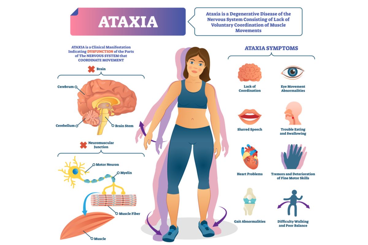 Faktor seperti degenerasi sel saraf, infeksi, trauma kepala, maupun penyakit neurodegeneratif dapat menyebabkan kerusakan pada sistem saraf ini. Misalnya, pada multiple sclerosis, sistem imun menyerang mielin di jalur saraf, sehingga sinyal tidak berjalan dengan baik dan menyebabkan ataksia. Pada penyakit Friedreich’s ataxia, kerusakan genetik menyebabkan degenerasi sel saraf di otak kecil dan sumsum tulang belakang.