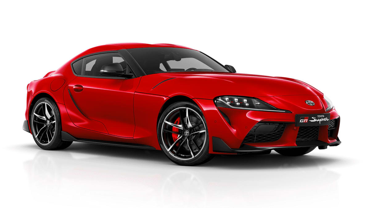 Pilihan warna-warna cerah dan gelap, seperti merah, hitam, putih, dan abu-abu metalik, memberi opsi bagi penggemar untuk menyesuaikan dengan gaya pribadi mereka. Detail eksterior seperti ventilasi dan garis bodi yang tegas menambah keindahan visual sekaligus mendukung fungsi aerodinamika. Secara keseluruhan, desain eksterior Toyota Supra menampilkan perpaduan antara gaya dan performa yang harmonis.